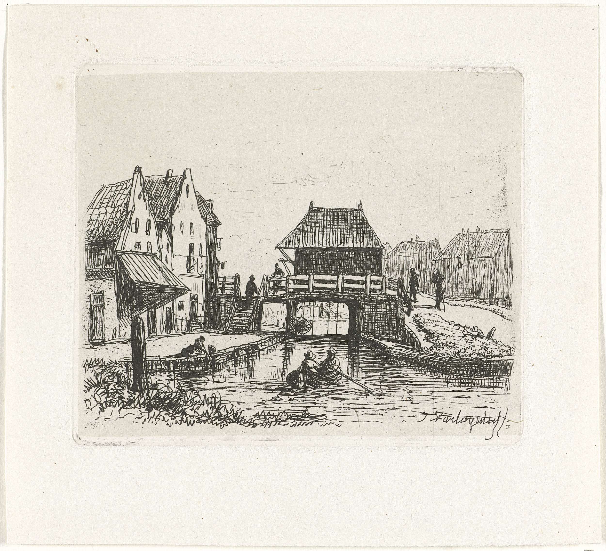 Gezicht op een brug over een gracht