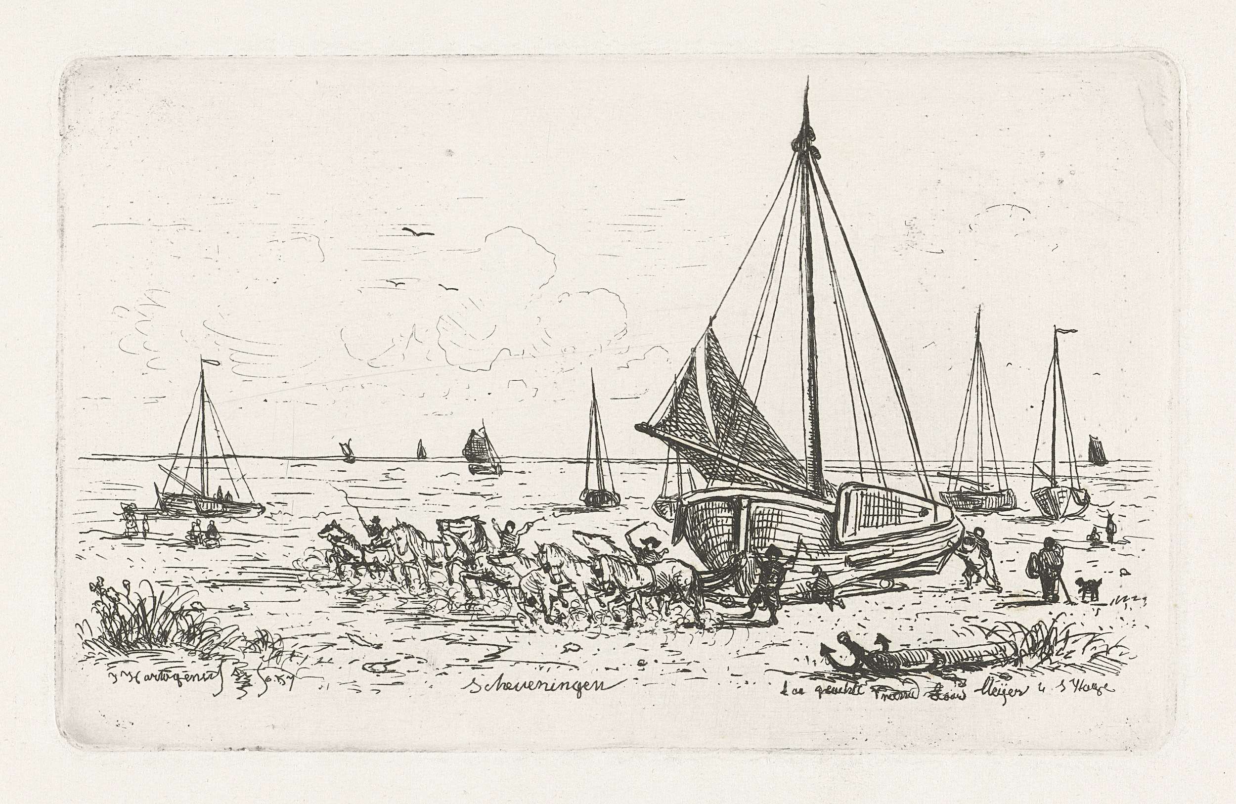 Trekpaarden bij vissersboten