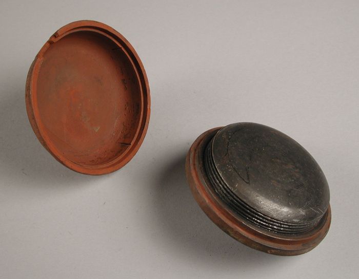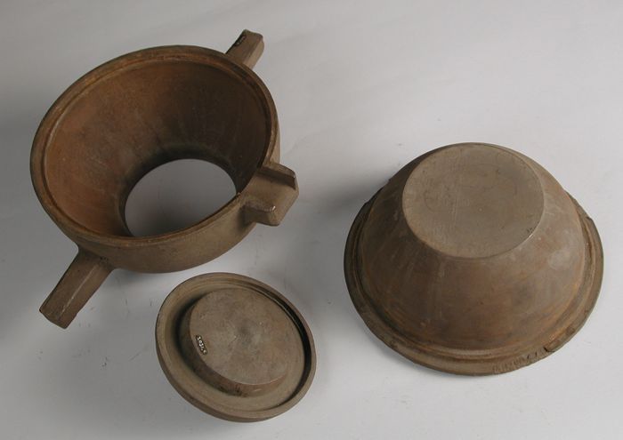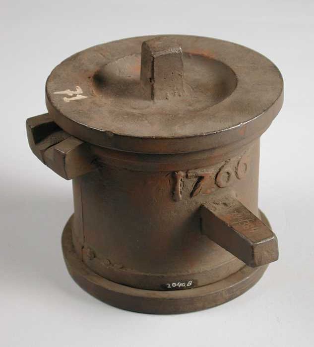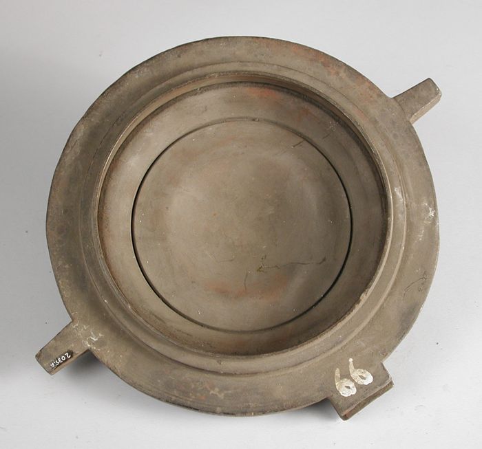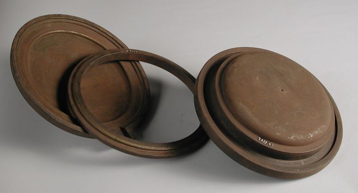 Driedelige bronzen mal voor deksel van kamerpot