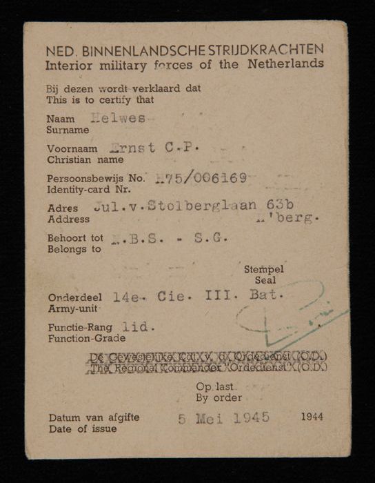 "Sonderausweis" voor E.C.P. Helwes, ten behoeve van ...