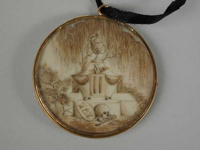 Haarwerkje op ovaal medaillon, memoriestukje ter her...