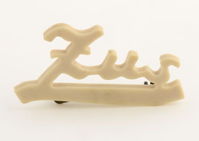 Kinderbroche van gebroken wit kunststof in de vorm v...