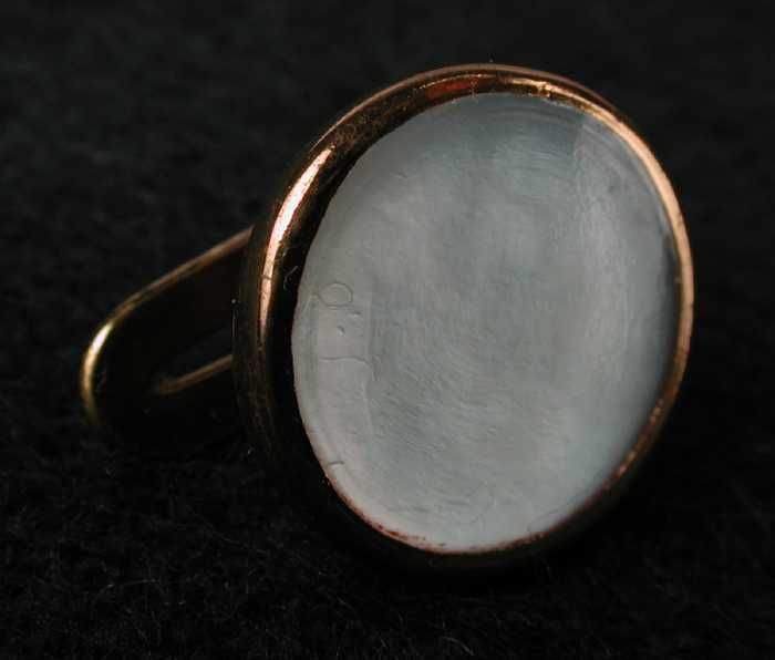 Memoriestukje van haar in medaillon van glas, gevat ...
