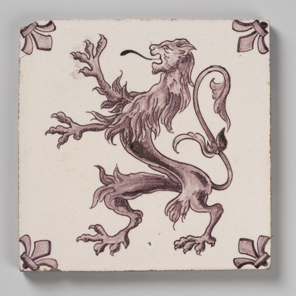 Tegel van keramiek met tinglazuur, voorstellende: or...