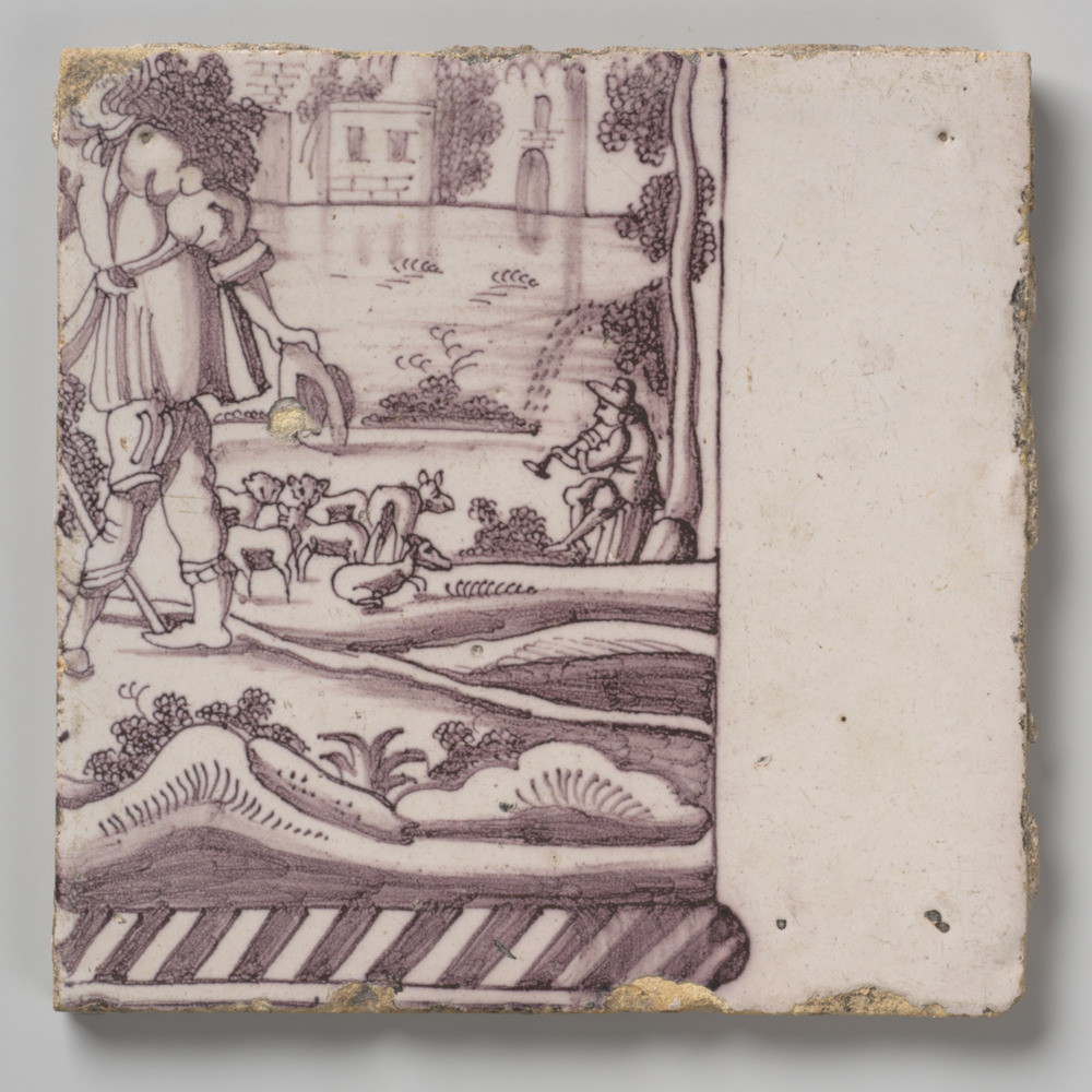 tegel van aardewerk met tinglazuur, voorstellende: m...