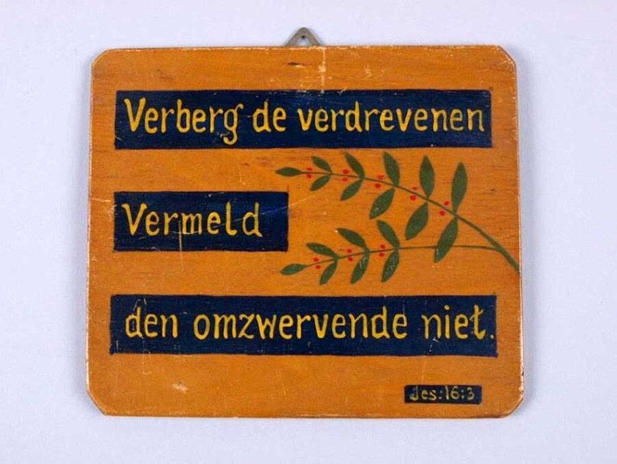 Wandbord met tekst, Verberg de verdrevenen vermeld d...