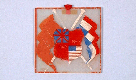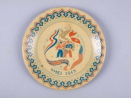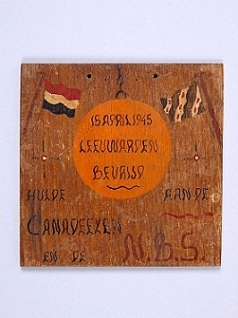 Wandbord, Mei 1945, afbeelding van NBS-er en Canadees