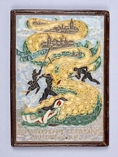 Tegel met tekst in stander, 23 April '45 Fryslan Frij