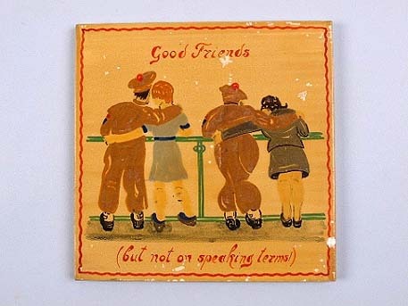 Tegel met tekst, Wol bugd maeye 1940 net (beige)
