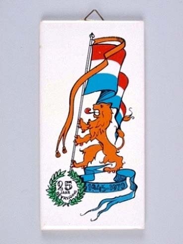 Tegel met tekst, 25 jaar bevrijding 1945 - 1970