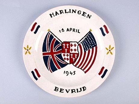 Wandbord met tekst, Harlingen 16 April 1945 bevrijd