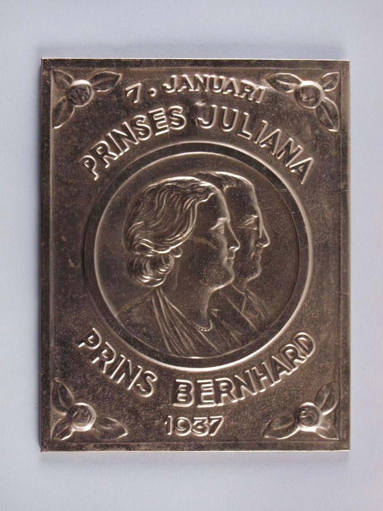 Plaquette met tekst, 7 Januari Prinses Juliana Prins...