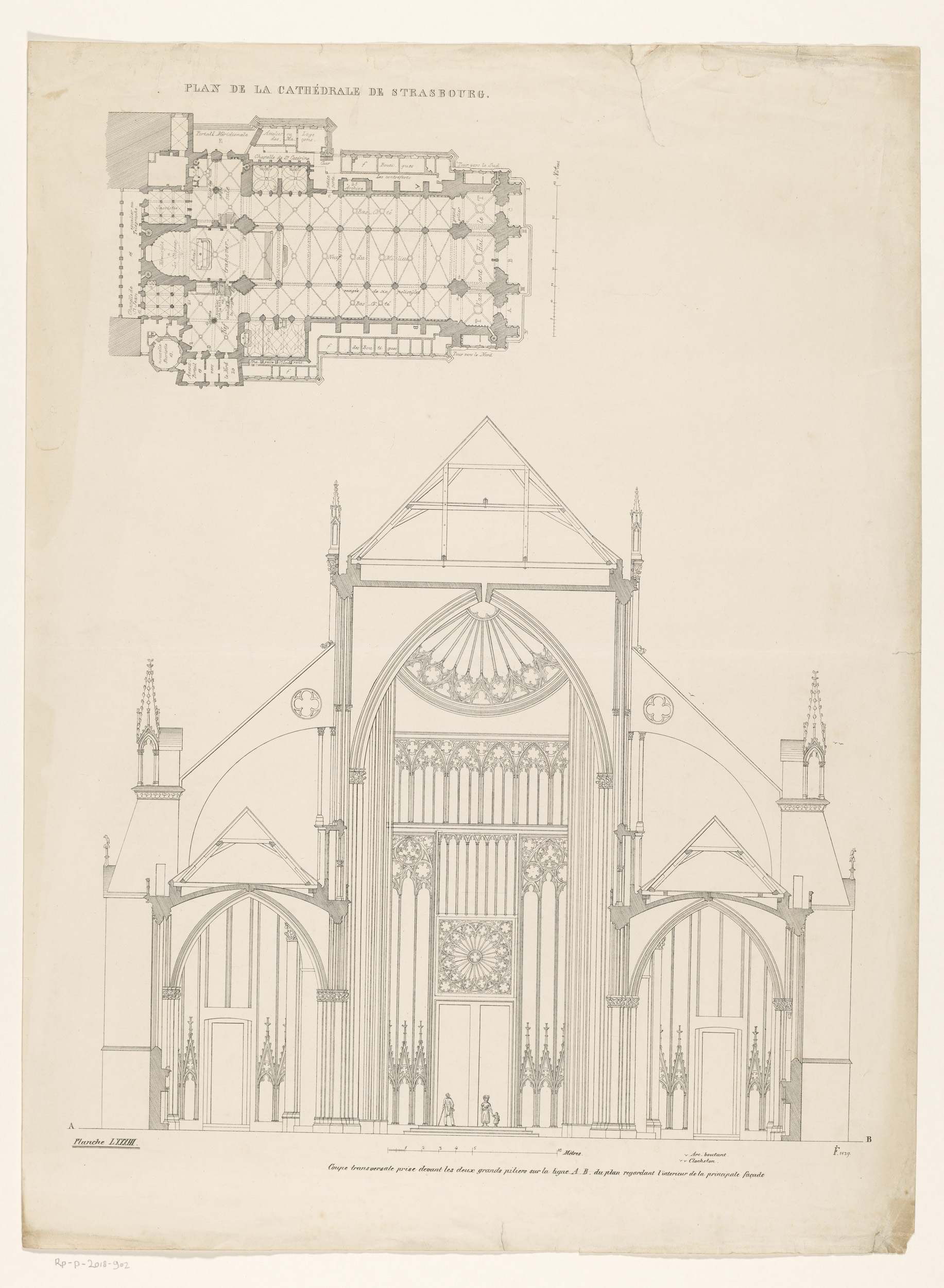 Plattegrond en doorsnede van de kathedraal van Straa...
