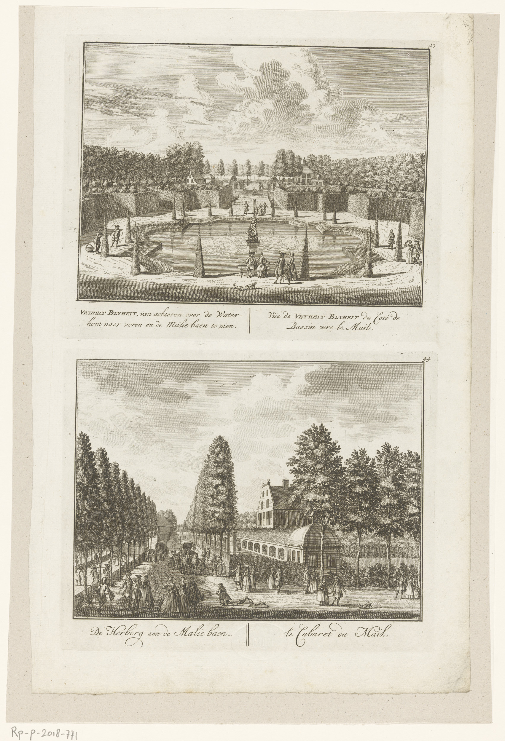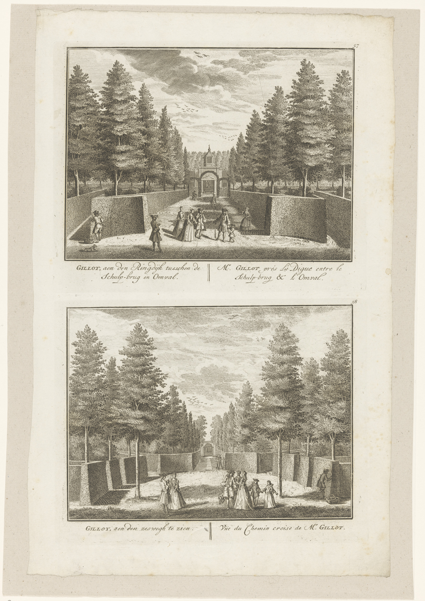 Gezicht op twee vijvers in de tuinen van buitenplaat...