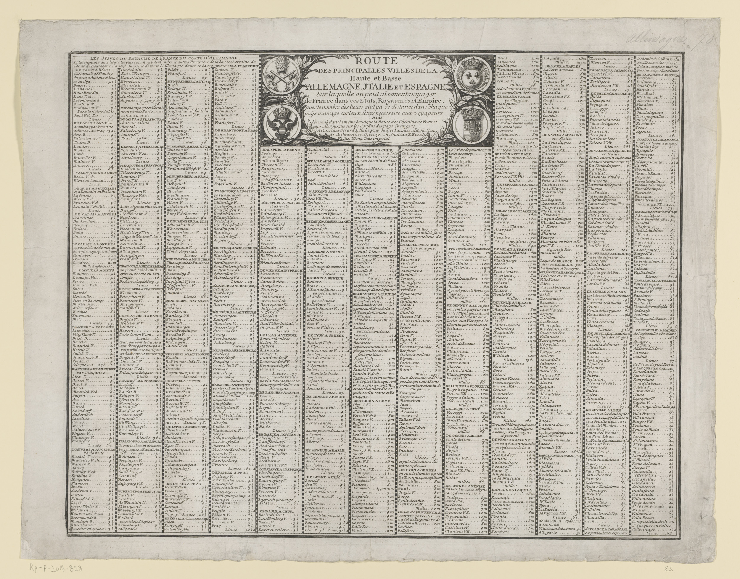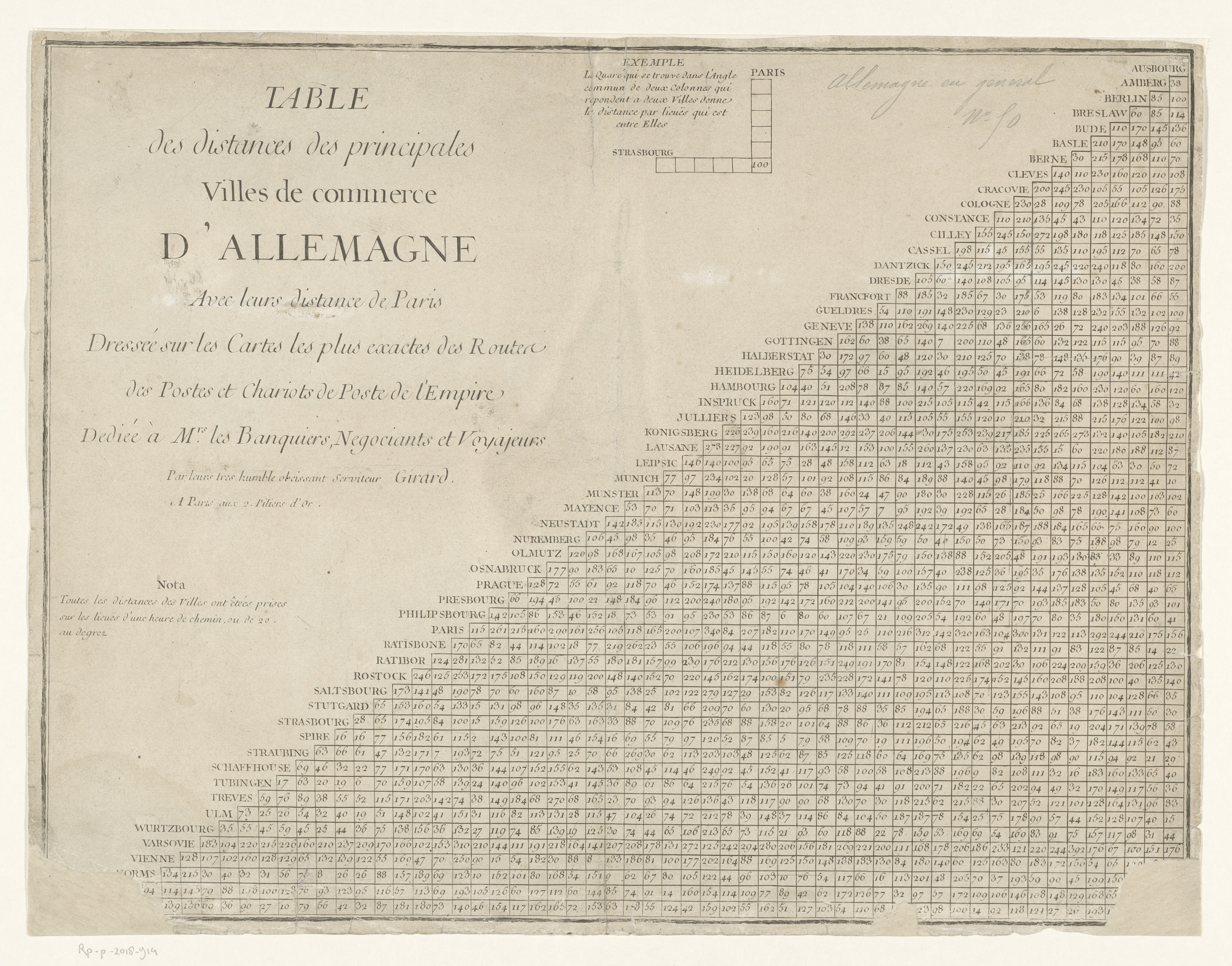 Tabel met de afstanden tussen de steden van Groot-Br...