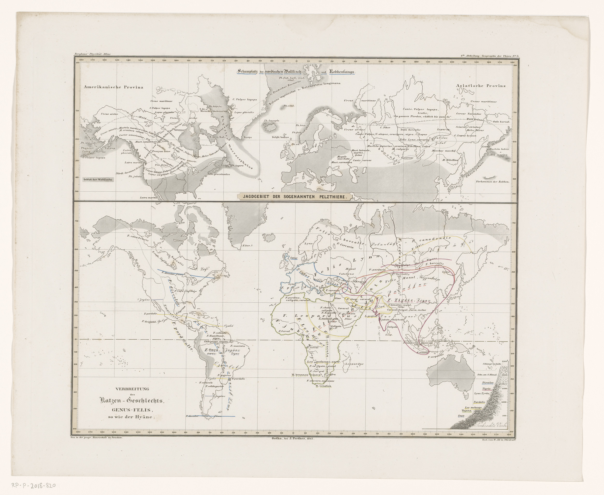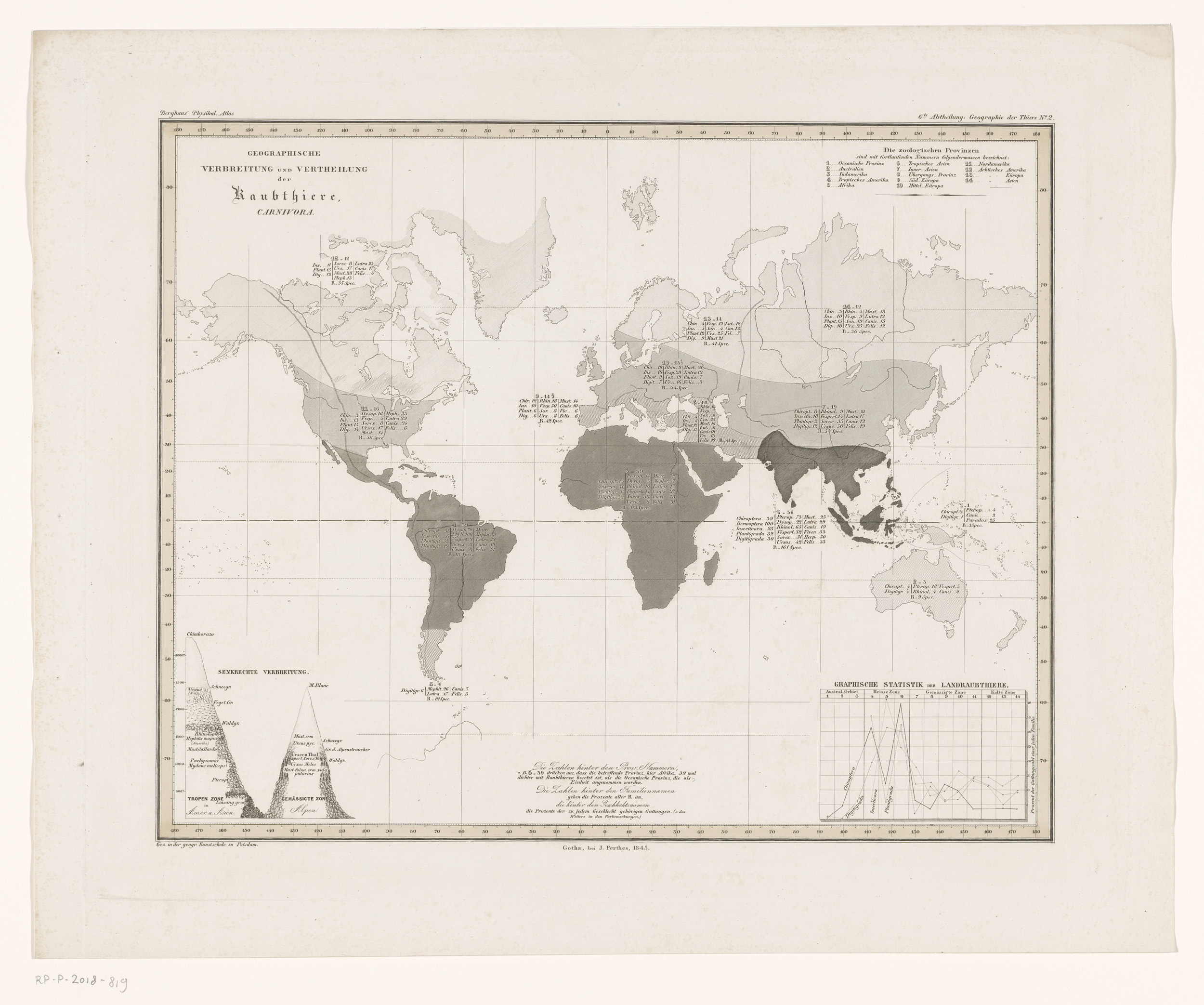 Wereldkaart met de dichtheid van roofdieren per gebied