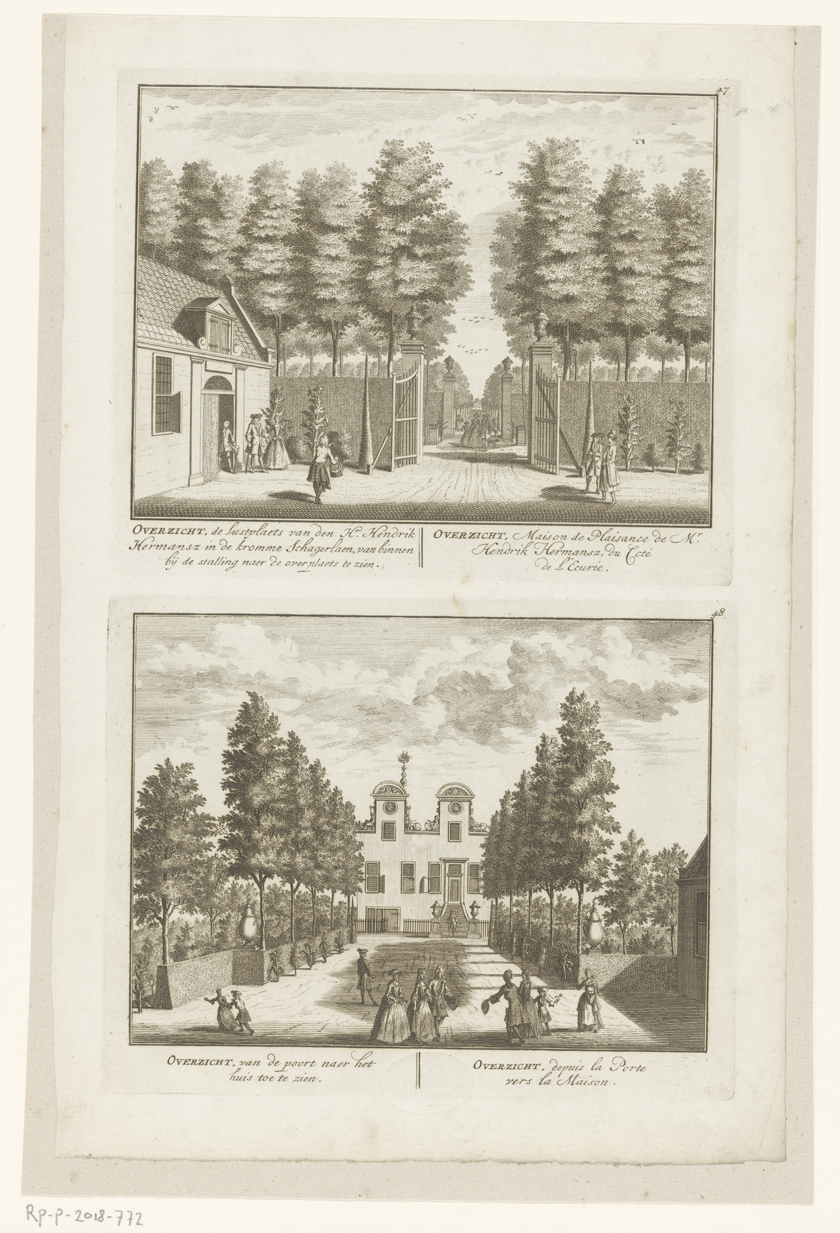Gezicht op buitenplaats De Vergulde Eenhoorn en een ...
