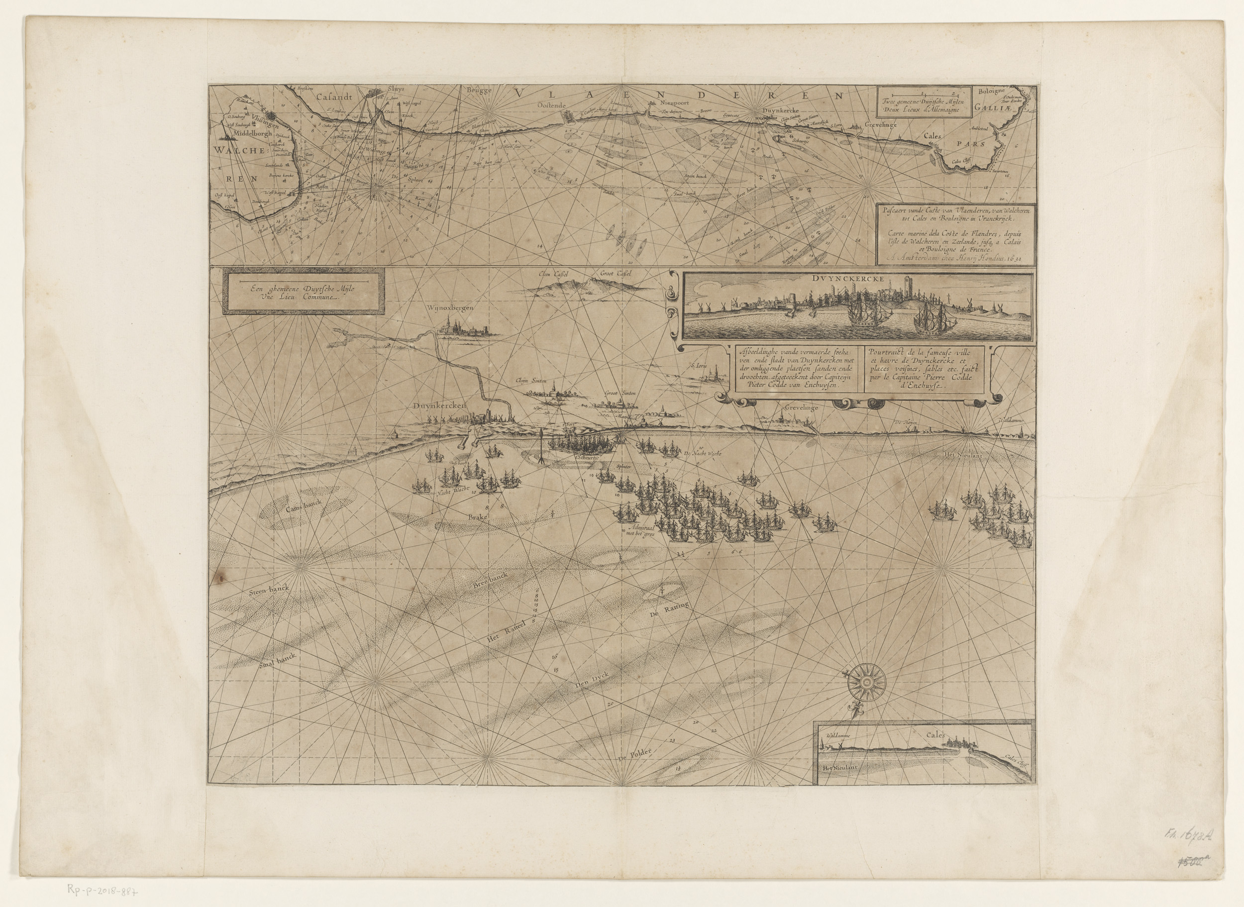 Kaart van de kust bij Duinkerke en van de Vlaamse ku...
