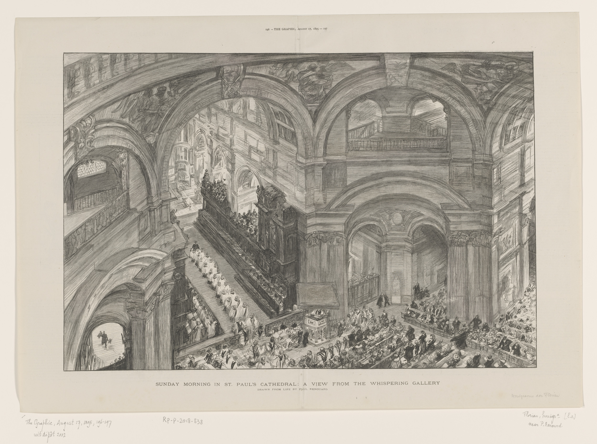 Gezicht op de zondagmis in St Paul's Cathedral vanui...