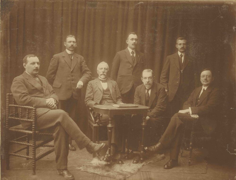 Foto, voorstellende het bestuur van de volkstuinen t...
