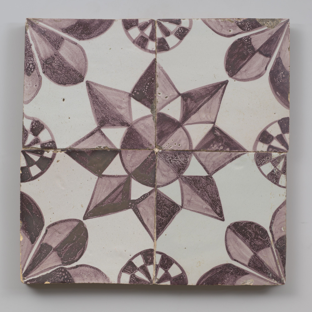 tegelveld van vier tegels van aardewerk met tinglazu...