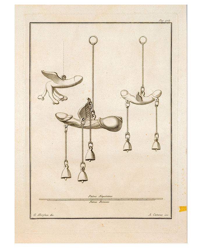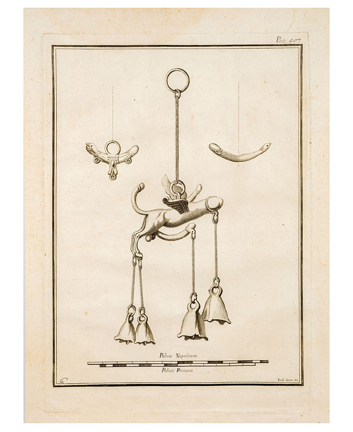Gravure van Fallus-rammelaar