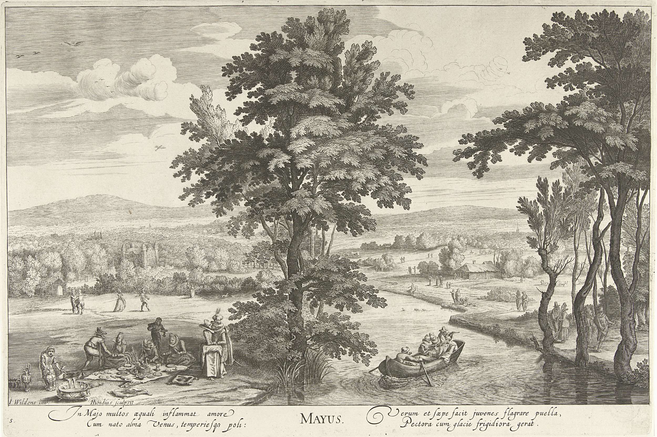 Mei, met een gezelschap in een landschap