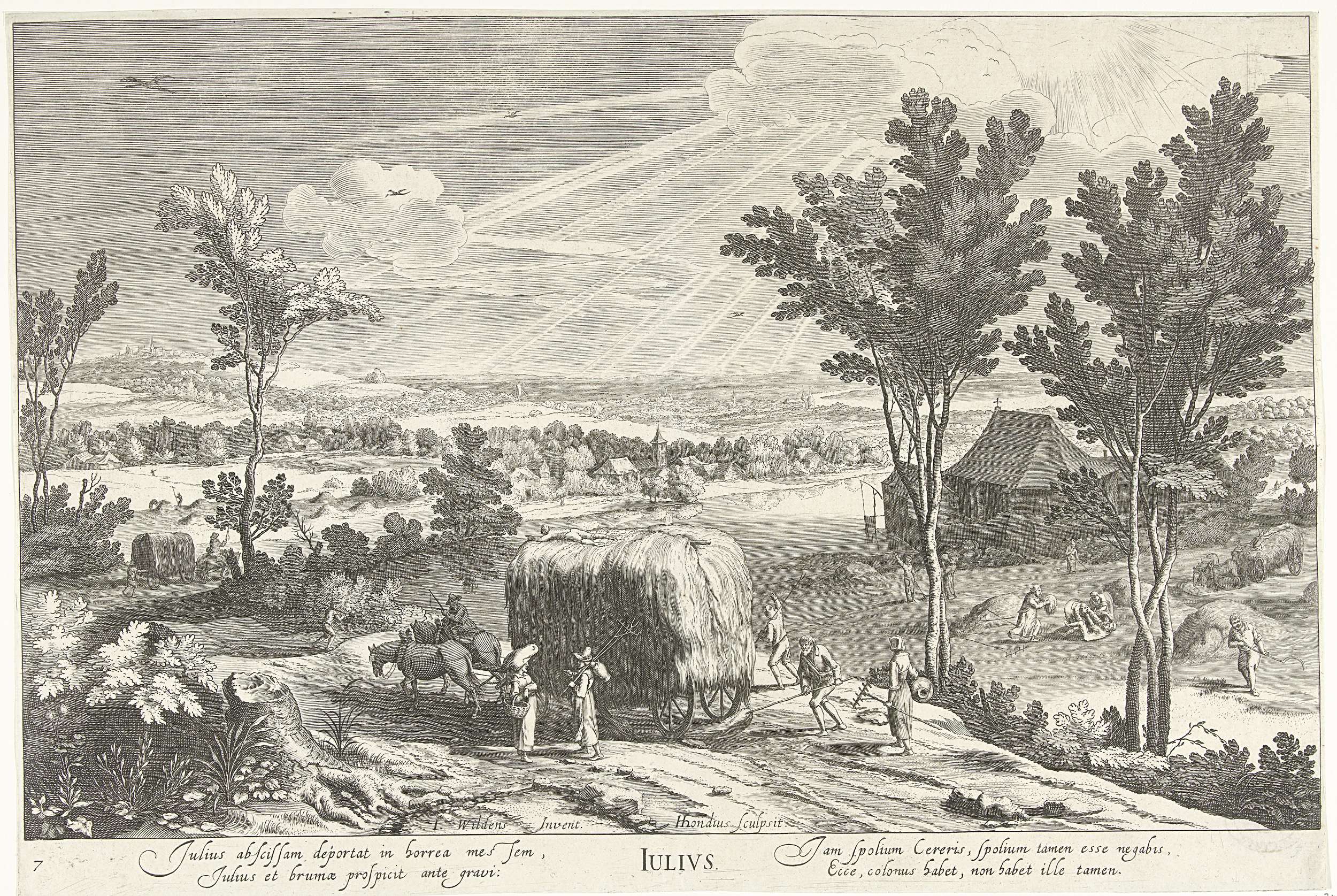 Juli, met boeren in een landschap