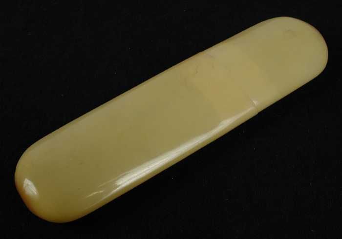 Brillenkoker van lichtgeel kunststof, twee in elkaar...