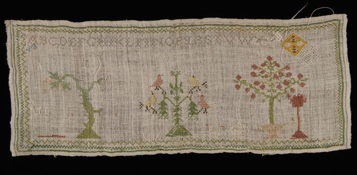 Onvoltooide lange merklap gewerkt in kruissteek en r...