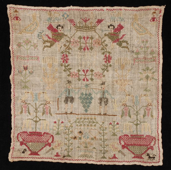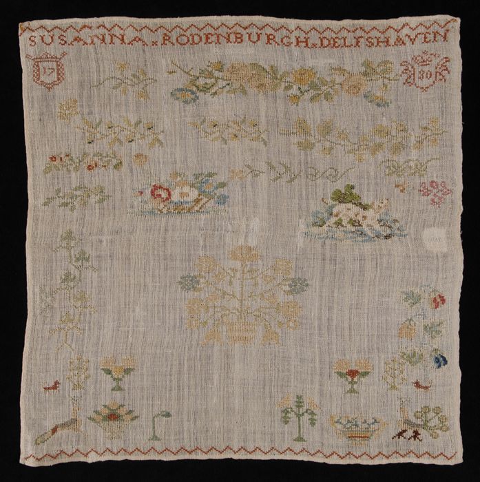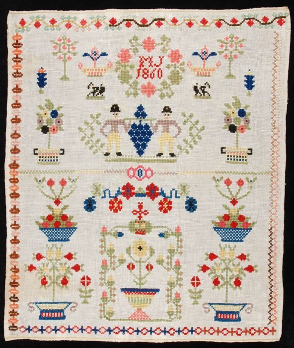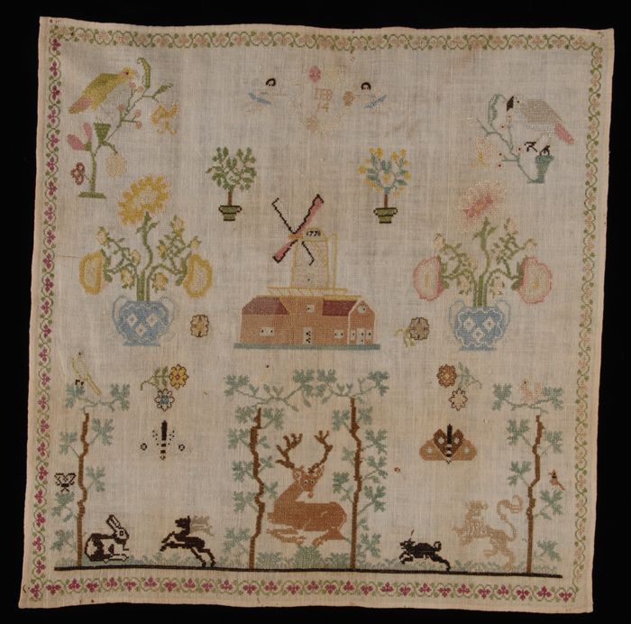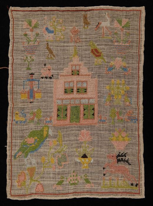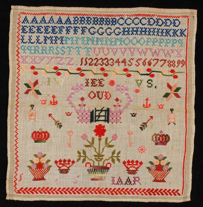 Merklap gewerkt in kruissteek en stersteek in gekleu...