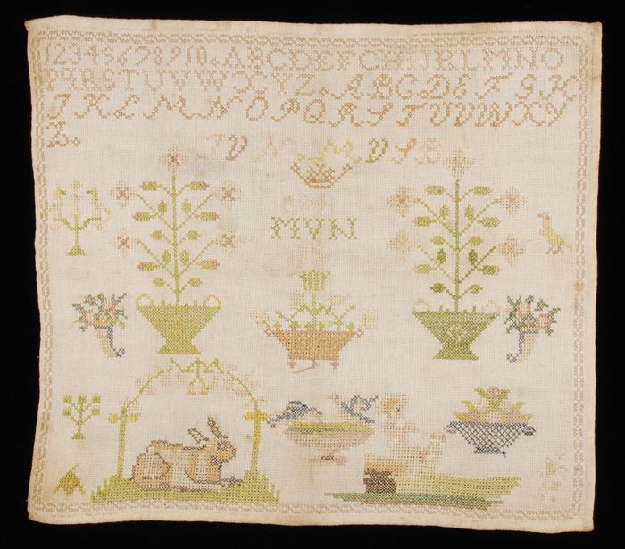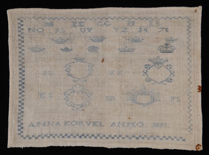 Onvoltooide lange merklap gewerkt in kruissteek en k...