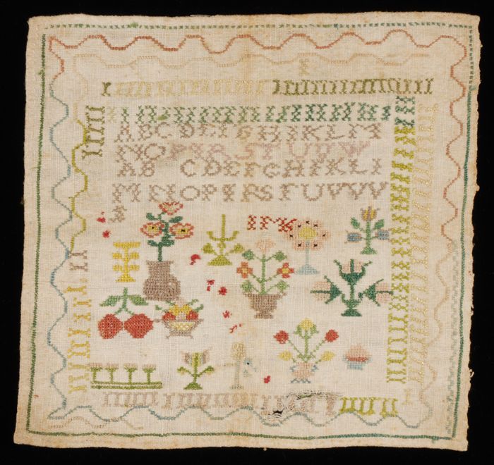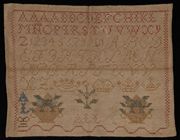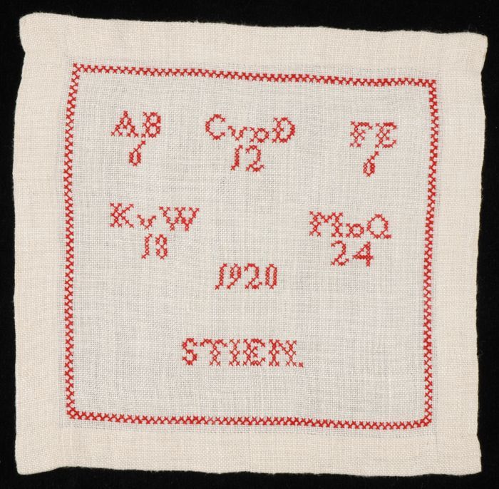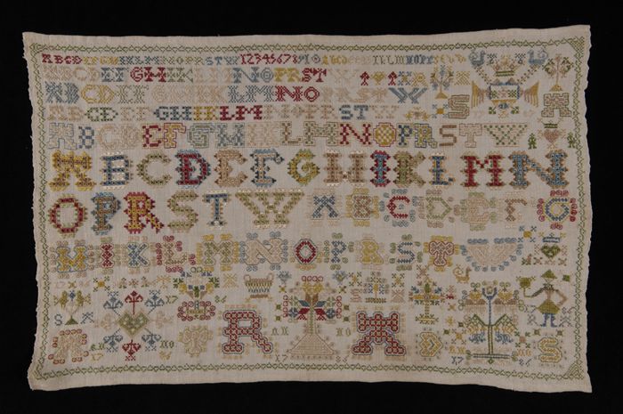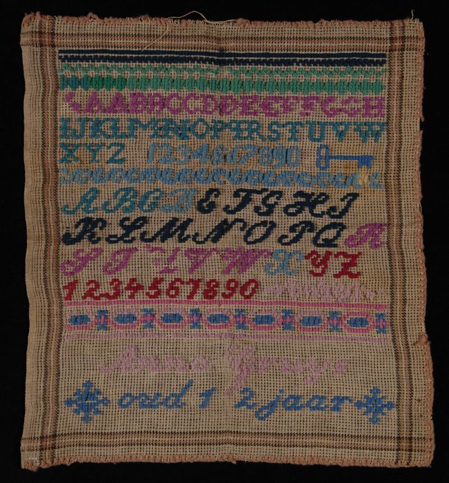 Brede merklap of letterlap gewerkt in kruissteek in ...