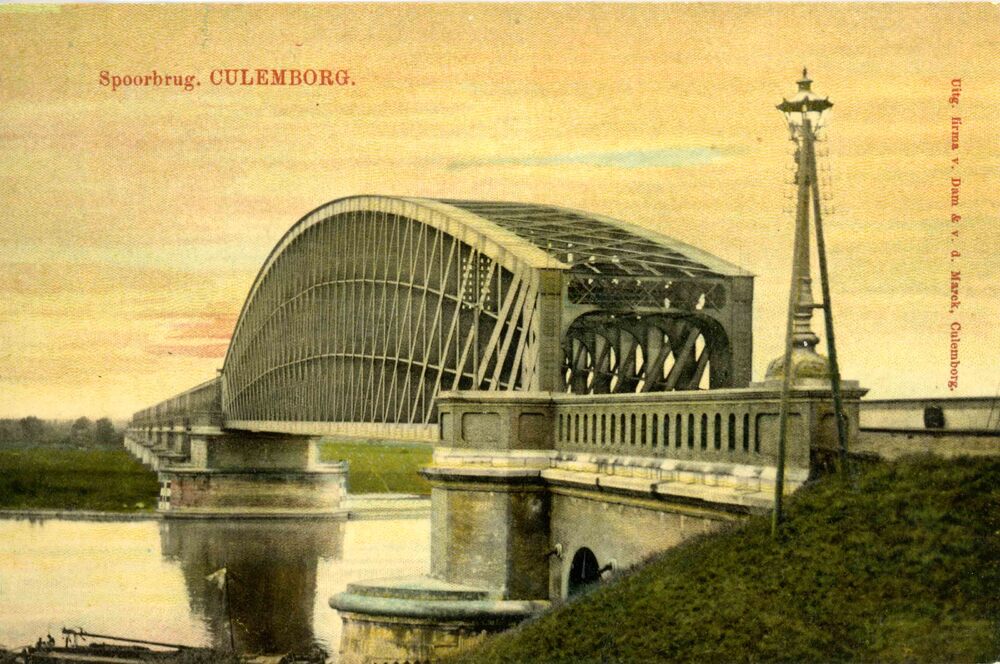Ansichtkaart, voorstellende de spoorbrug te Culembor...