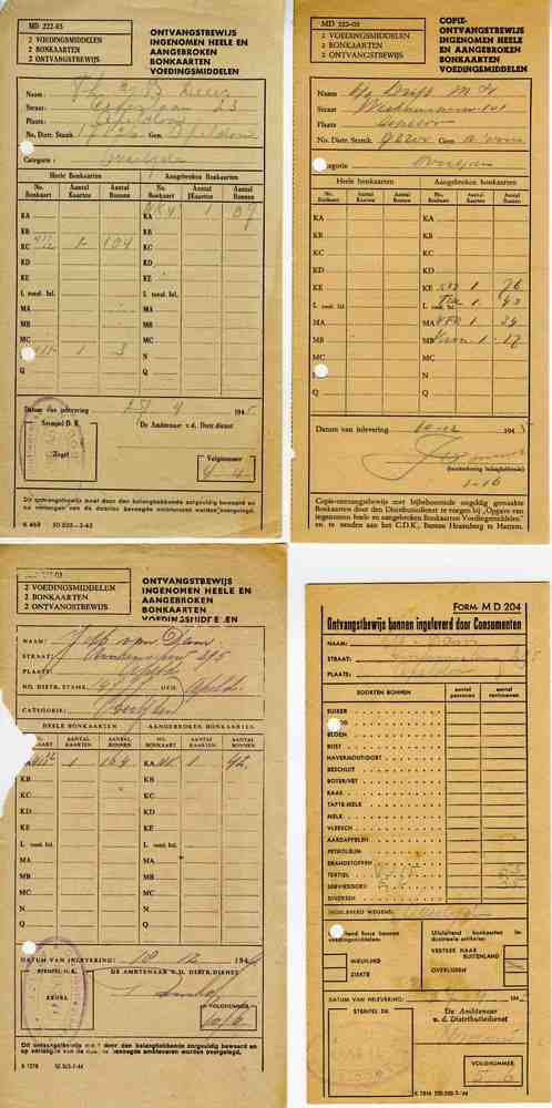14 ontvangstbewijzen van bonkaarten, 1943-1946