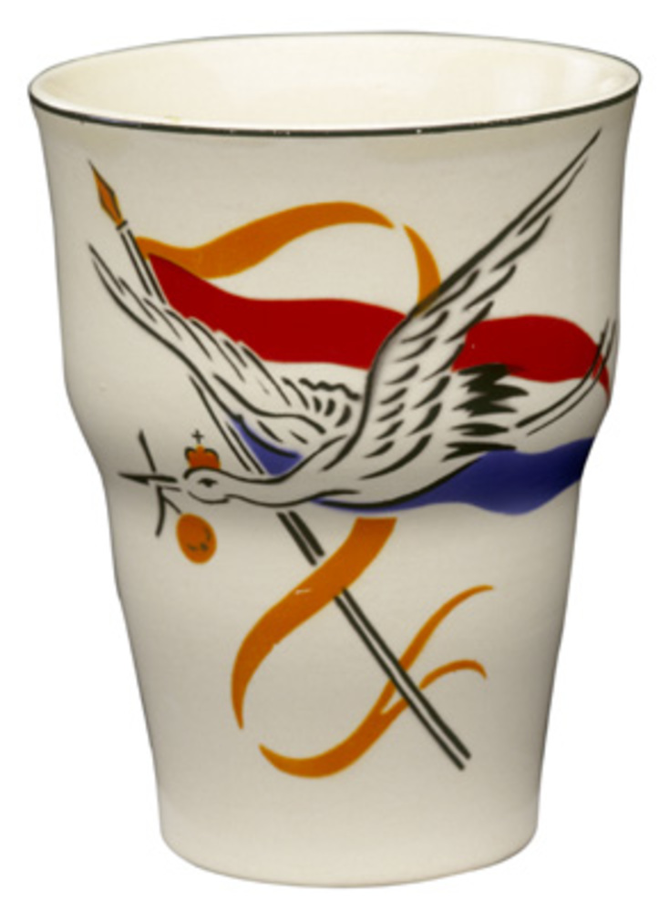 herinneringsbeker van keramiek uitgegeven bij de geb...