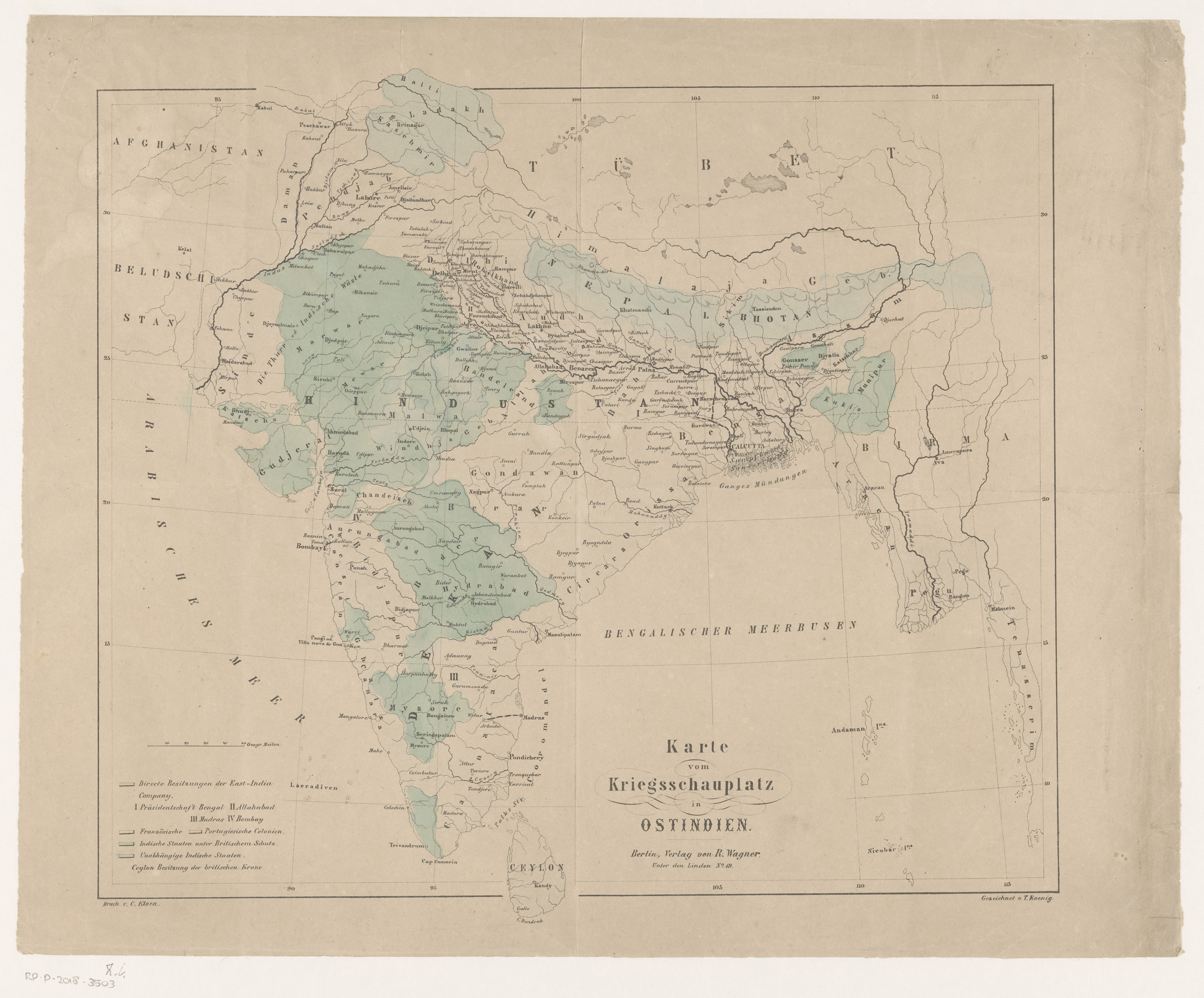 Kaart van Europese koloniale bezittingen in India