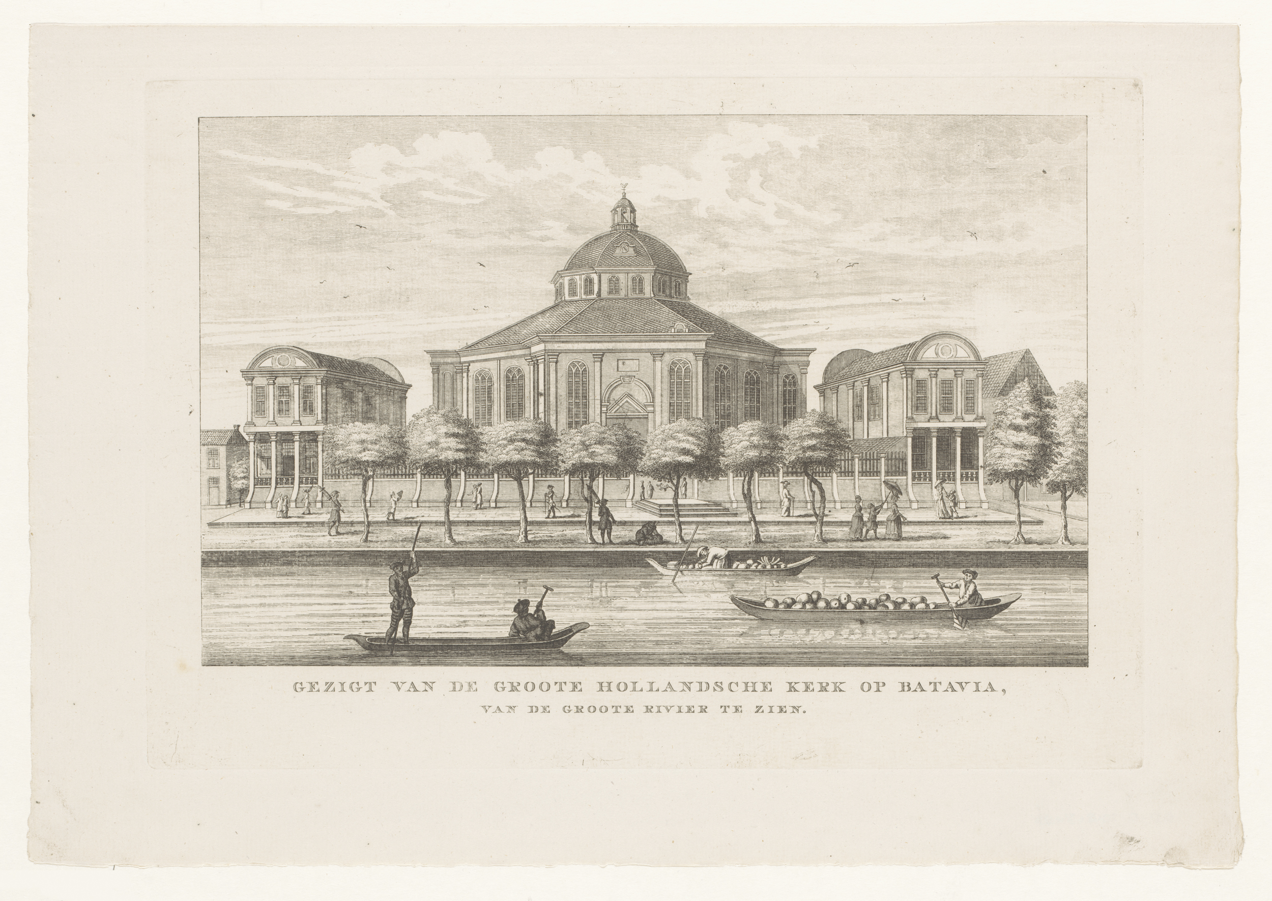 Gezicht op de Hollandse Kerk te Batavia vanaf de riv...