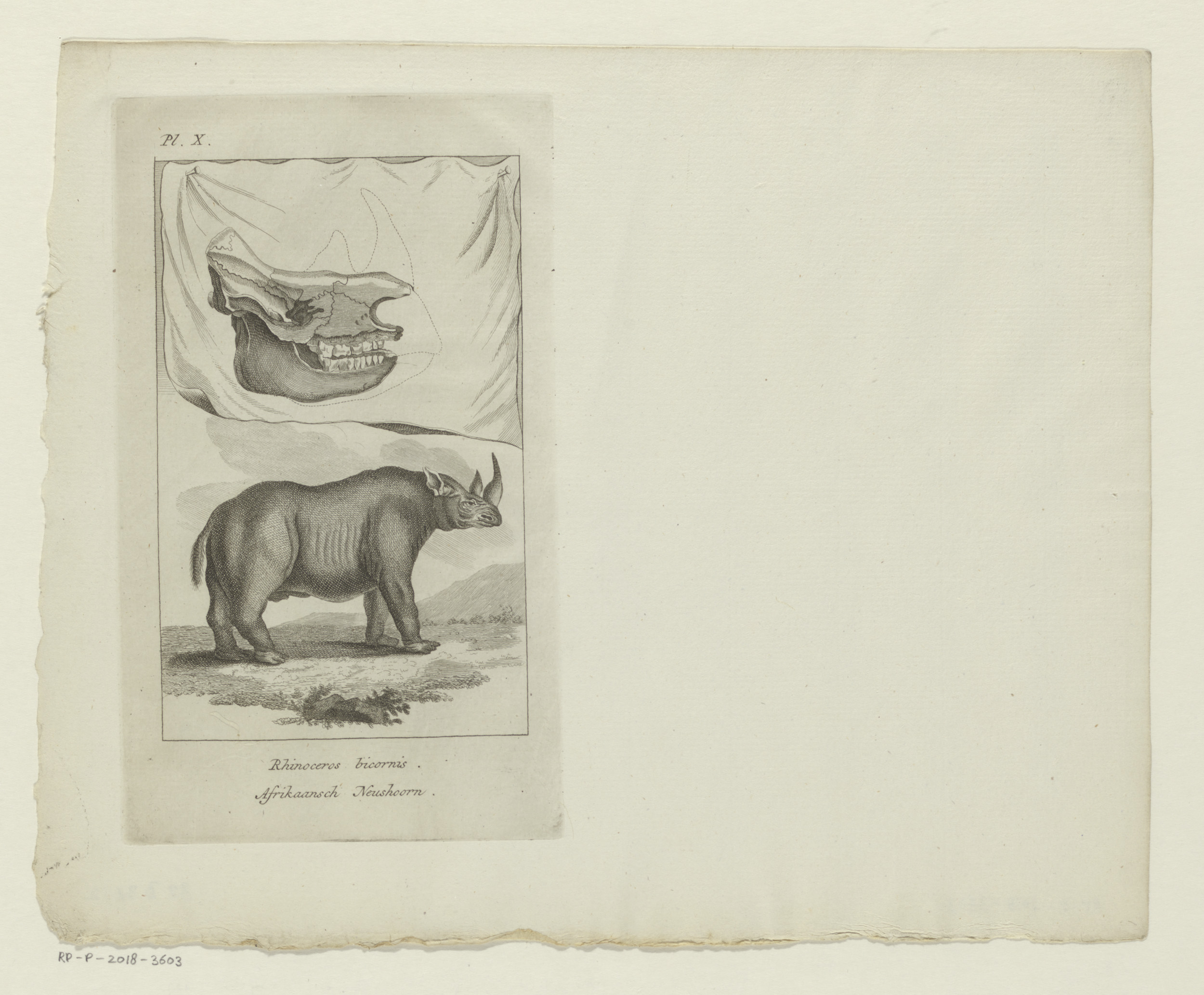 Zwarte neushoorn en schedel van een zwarte neushoorn