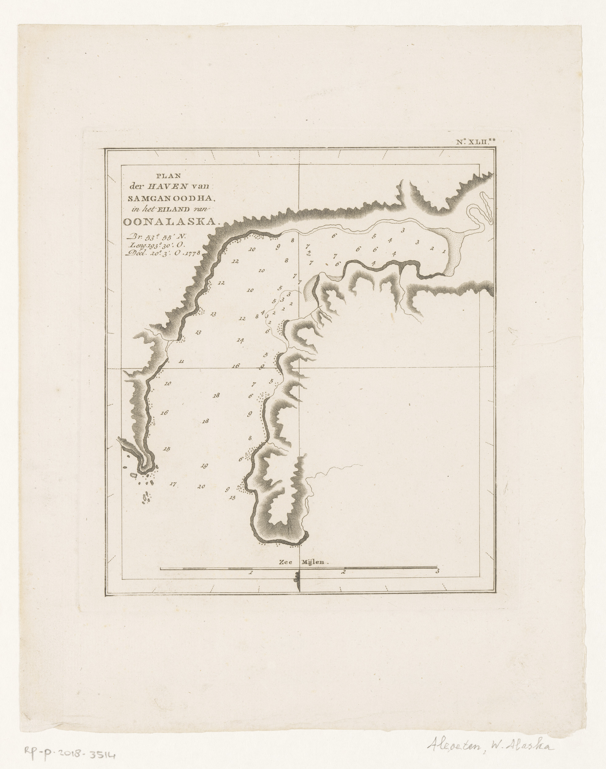 Kaart van een haven op het eiland Unalaska