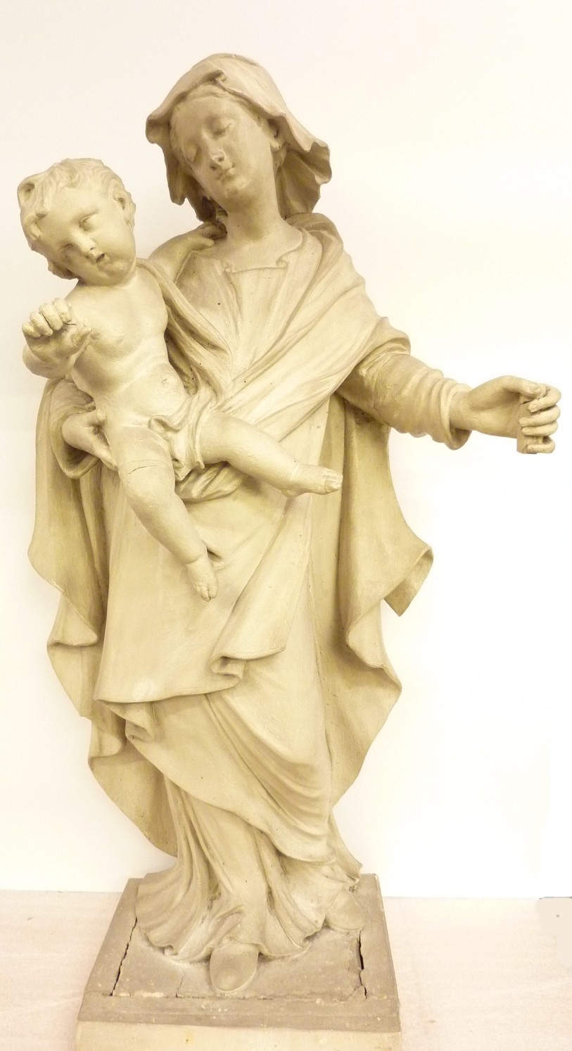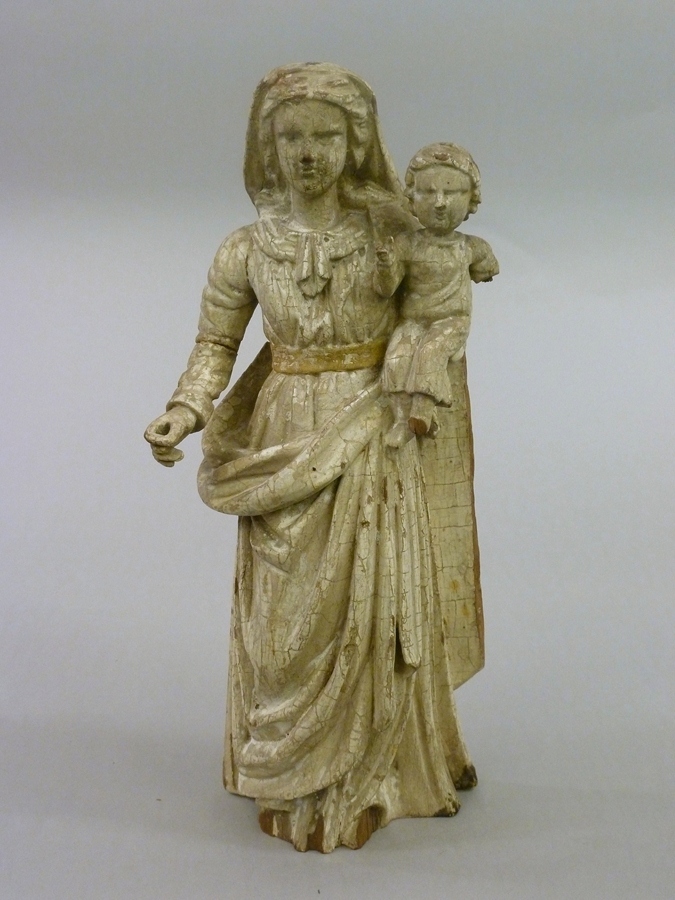 Maria met kind op linkerarm, wit geschilderd, in rec...
