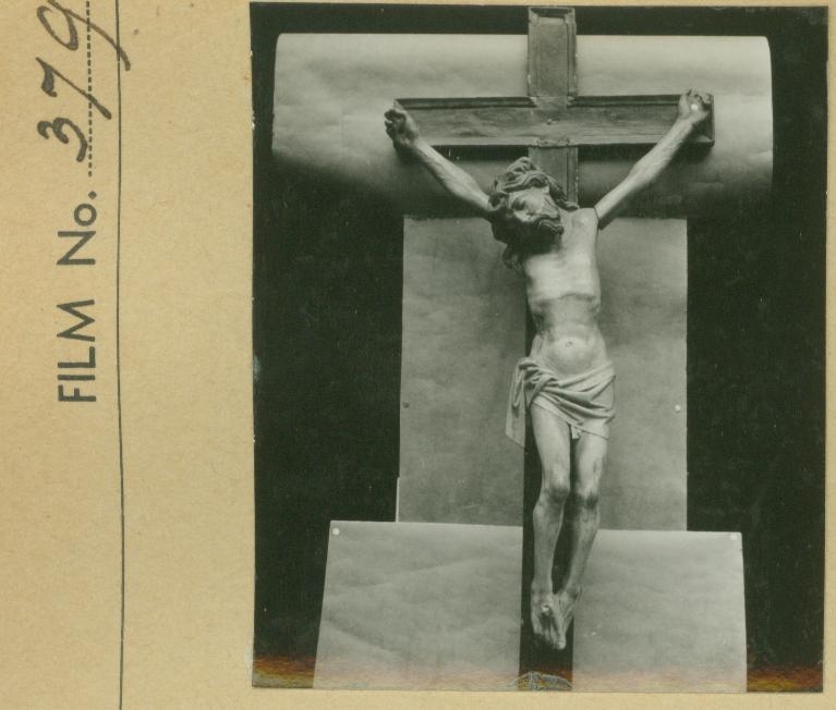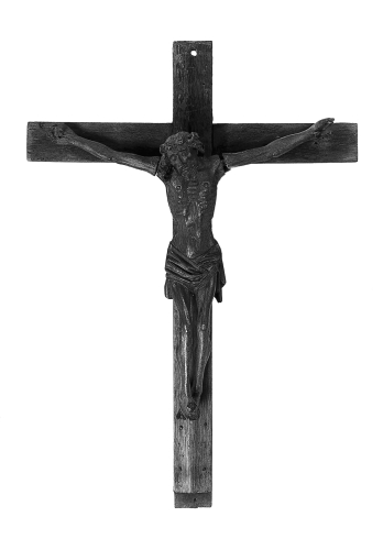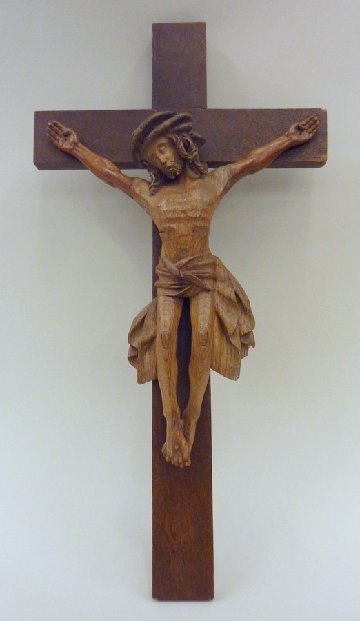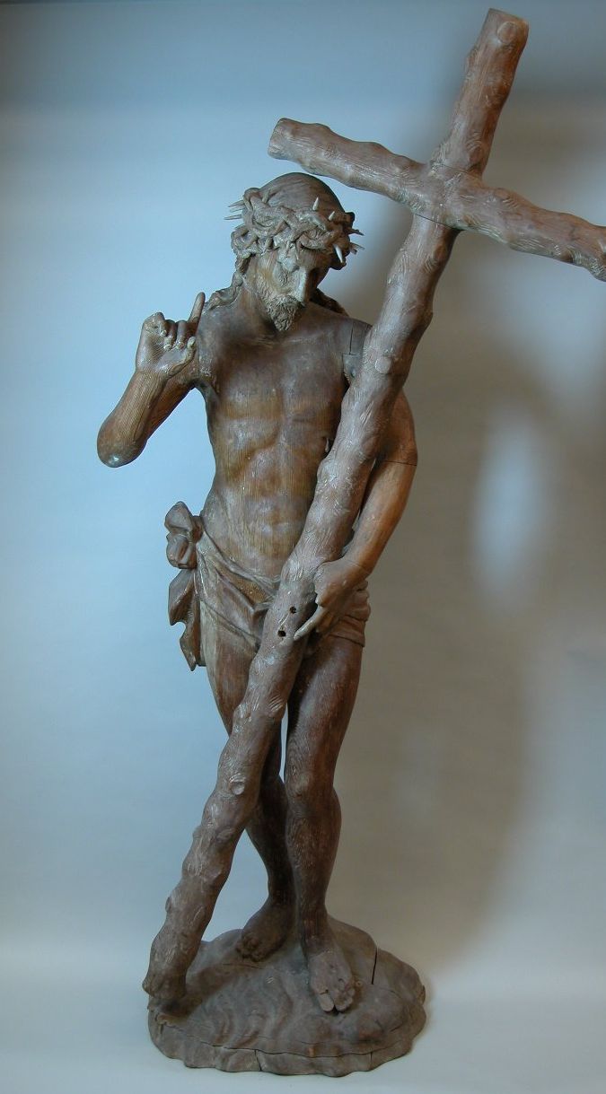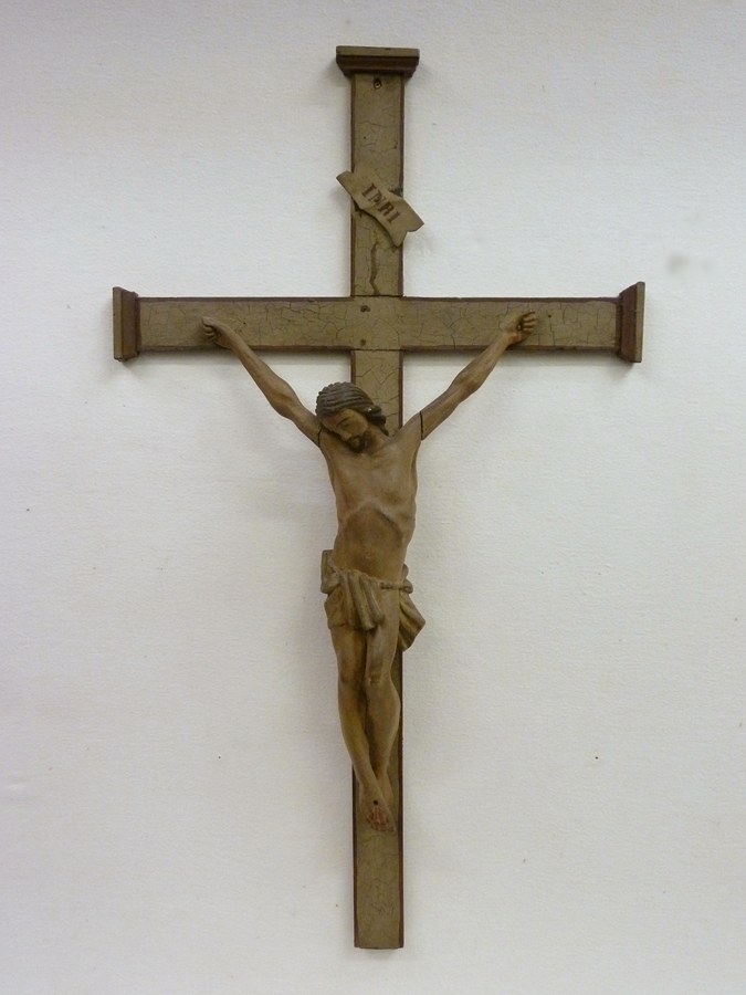 Christus omvat met linkerarm kruisbalk, heeft rechte...