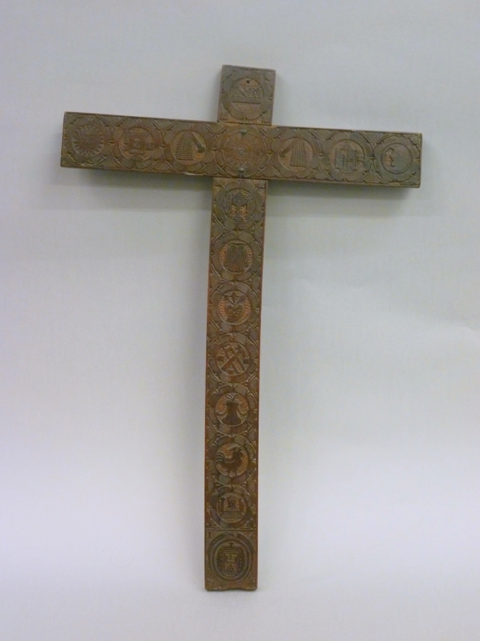 Houten kruis, opgelegd met gegraveerd parelmoer