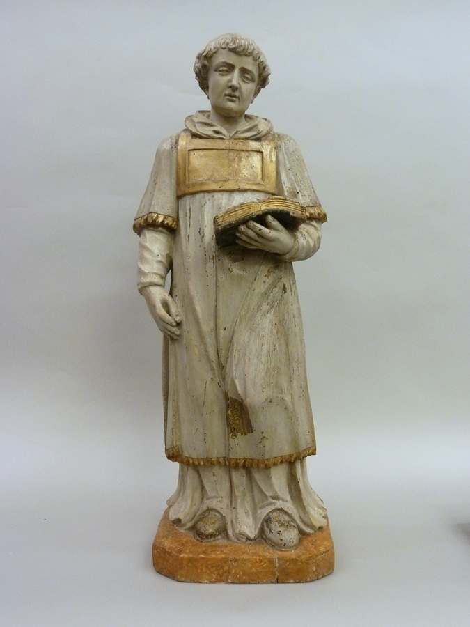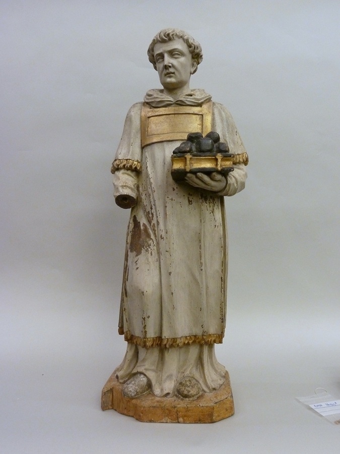 Stephanus met gesloten boek waarop stenen, rechterha...