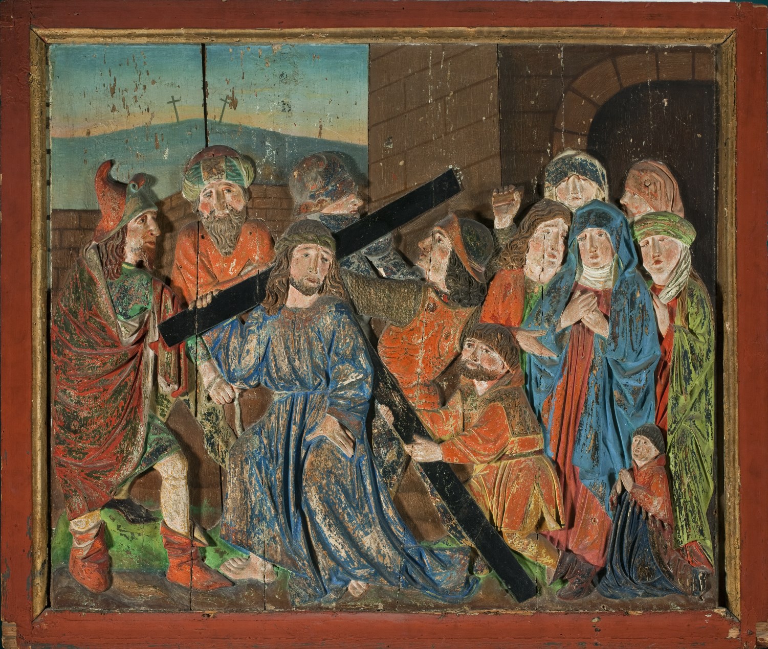 Kruiswegstatie, Simon van Cyrene helpt Christus het ...