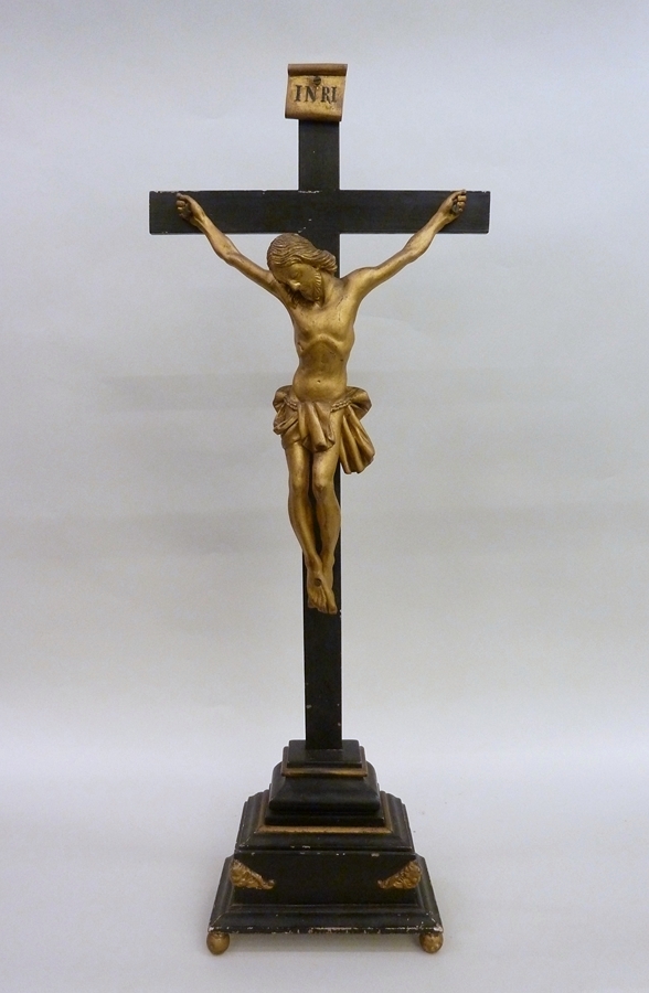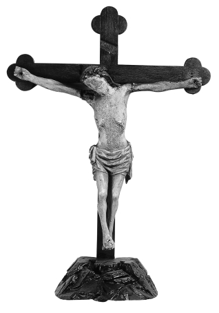 Kruisbeeld op grote losse voet met medaillon met Lam...