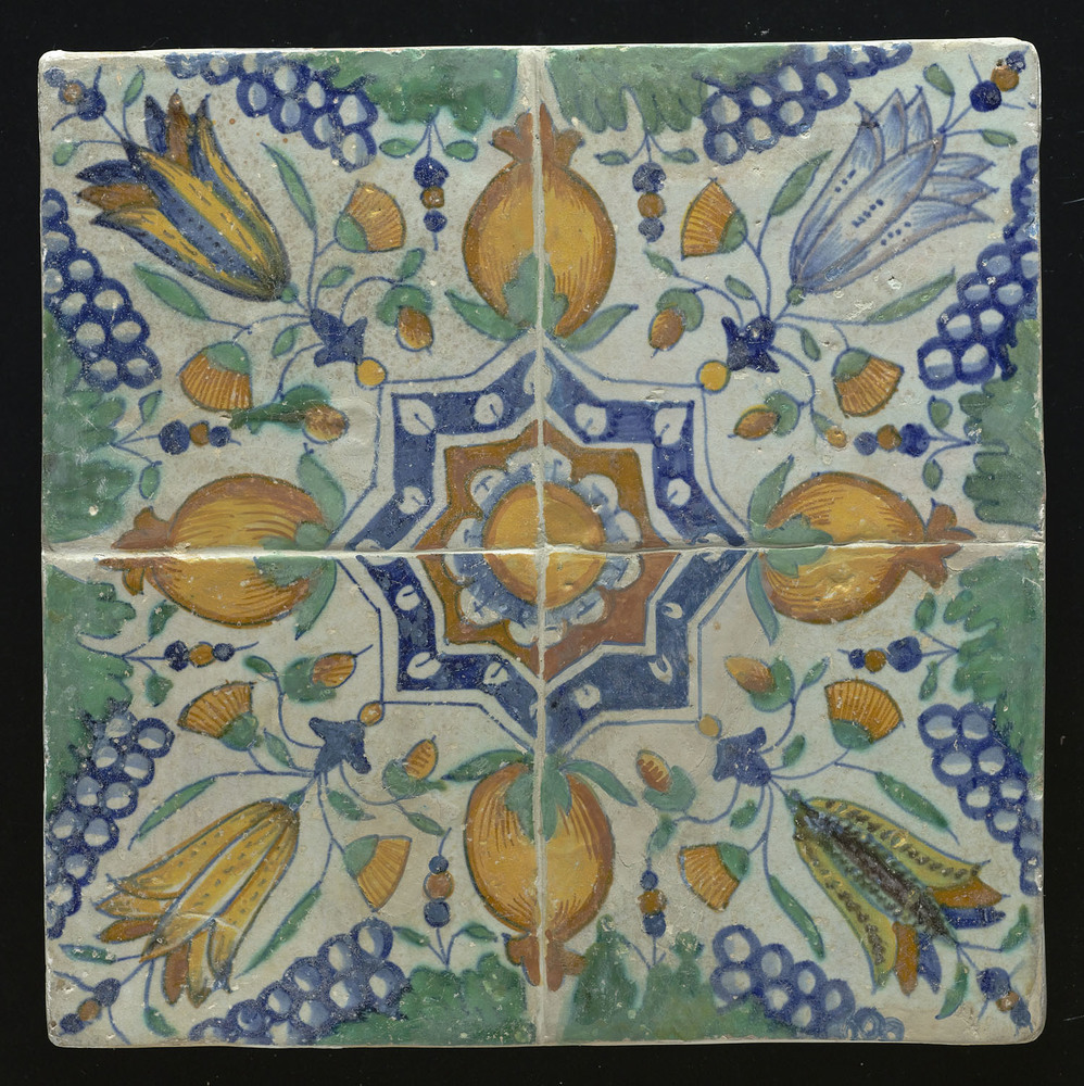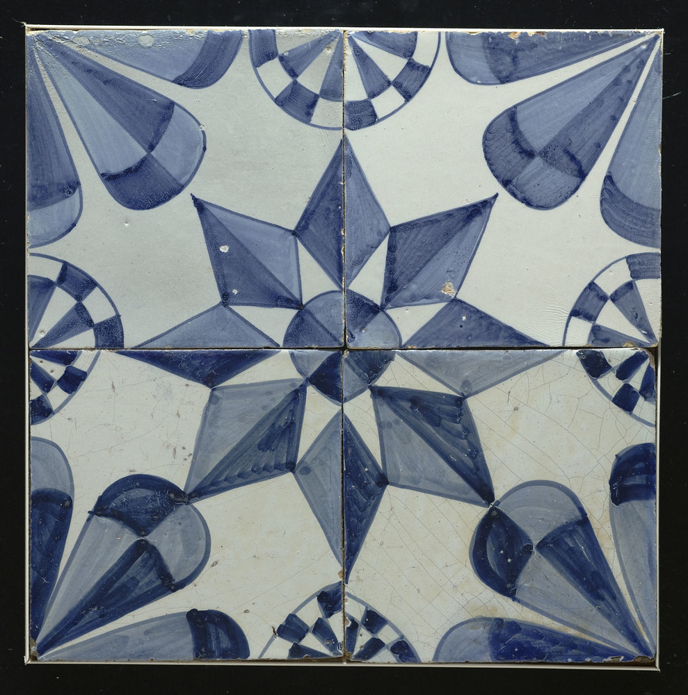 Tegelveld bestaande uit vier tegels van keramiek met...
