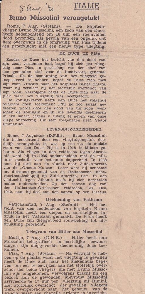 krantenknipsels 7 augustus 1941