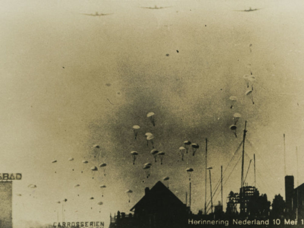 Foto van landing van Duitse parachutisten bij het bo...