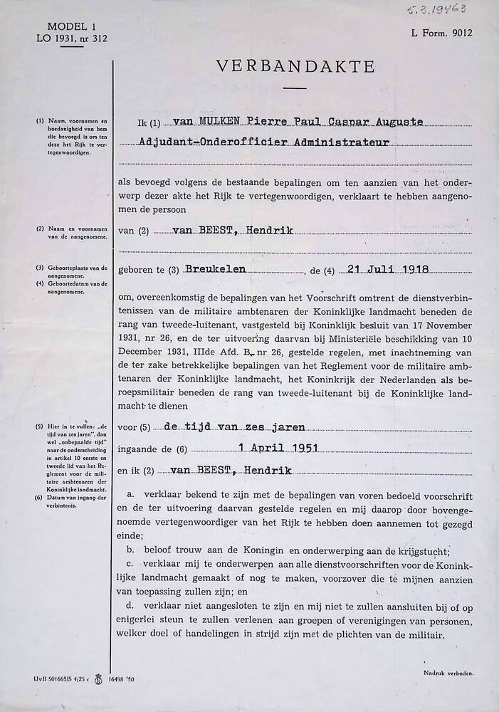 Verbandakte aanname personeel Koninklijke Landmacht